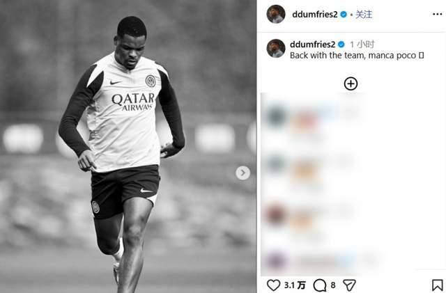 3 - 邓弗里斯晒训练照宣布伤愈复出 即将重返赛场贡献力量