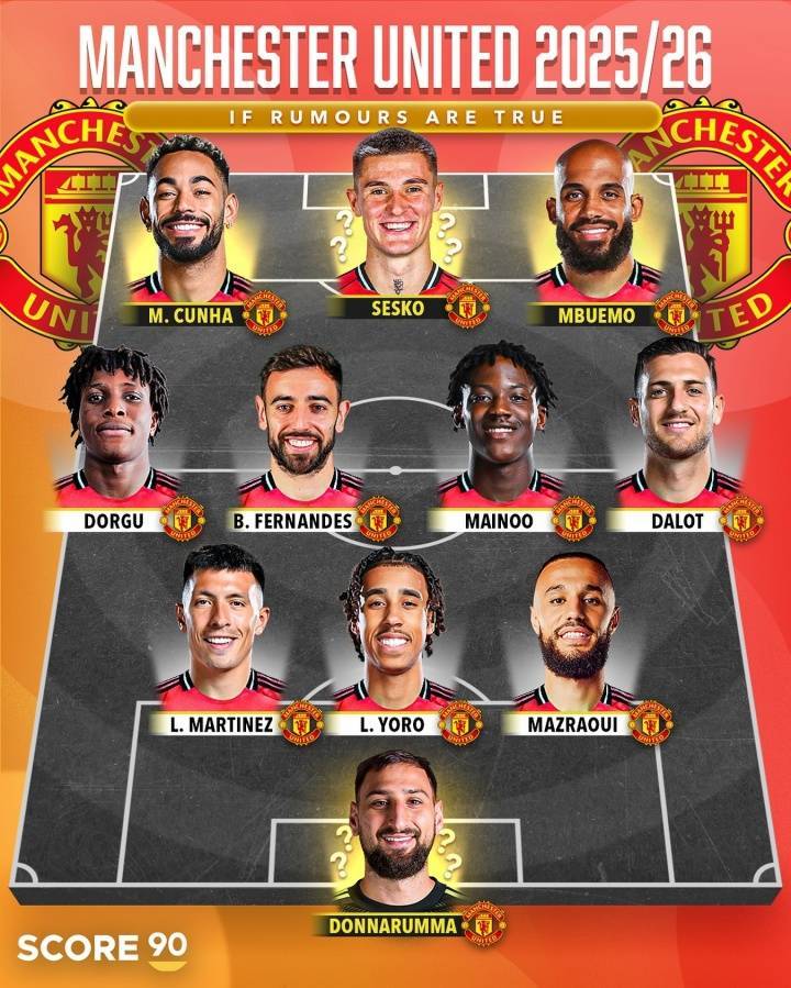 能否争冠曼联潜在首发:塞斯科&多纳鲁马加盟 库尼亚姆贝莫在列