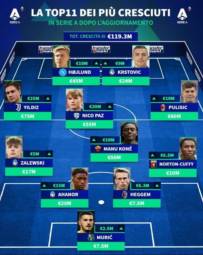 德国转会市场近日公布了意甲球员的最新身价评估,一些年轻球员的身价实现了显著增长。 霍伊伦、伊尔迪兹、尼科·帕斯以及普利西奇等球员均入选了德转评估的身价涨幅最佳阵容。 这些年轻球员凭借着在球场上的出色表现,赢得了市场的认可。 他们的身价上涨,也反映了意甲联赛新势力的崛起。