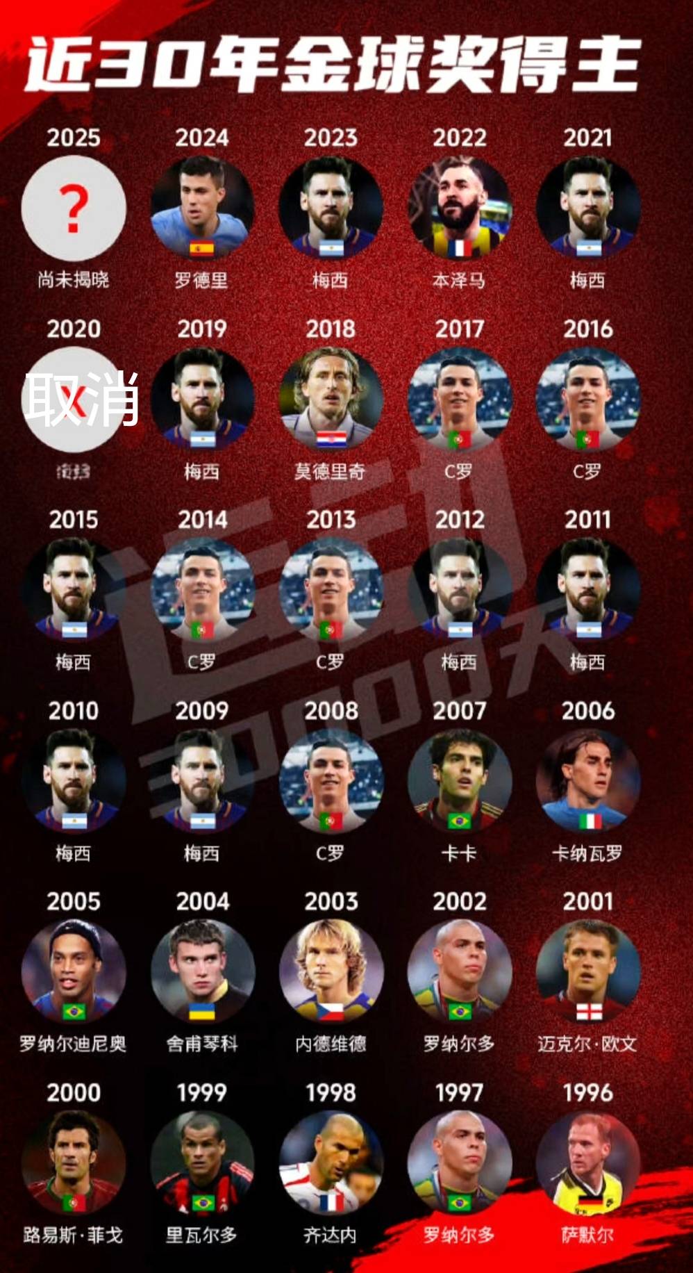 更令人感慨的是,登贝莱凭借此次获奖,成为了足坛历史上第10位完成“金满贯”(世界杯+欧冠+金球奖)的球员。这意味着他的名字将与贝肯鲍尔、齐达内、梅西等传奇并列。
